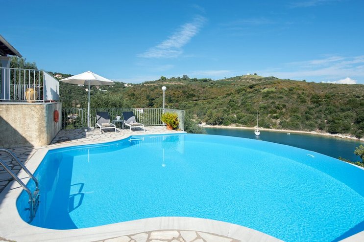 Diese Luxusvilla auf Korfu befindet sich in hervorragender Lage direkt über dem Wasser der wunderschönen Bucht von Soukia und ist schick, stilvoll und sehr geräumig, mit großem Wohnraum im Freien, der durch eine herrliche Aussicht ergänzt wird.