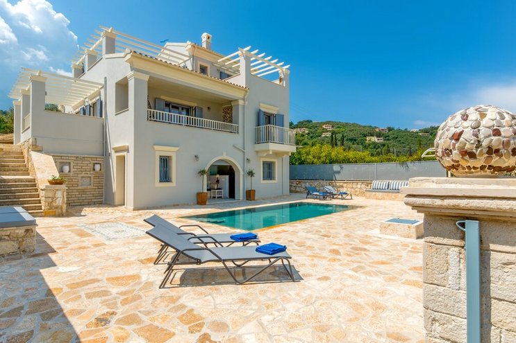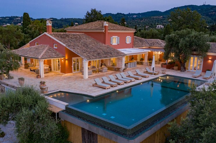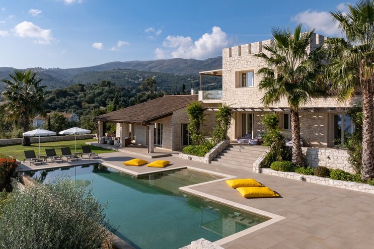 Privat gelegen, stilvoll anspruchsvoll und gleichermaßen attraktiv für Familien oder Gruppen von Freunden, bietet diese Luxusvilla auf Korfu diese glückselige mediterrane Mischung aus Küsten- und Landleben.
