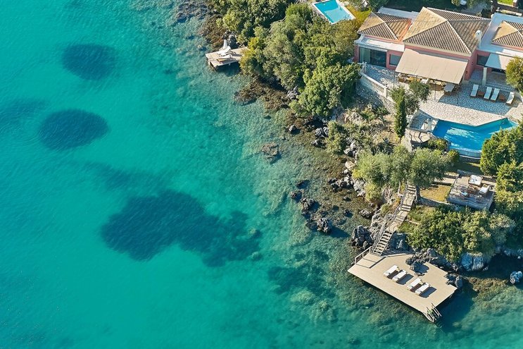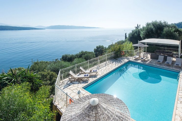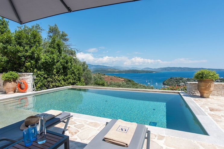 In einer wunderschönen Umgebung am Wasser, mit einem Pool, der sich wie der Bug eines Schiffes anfühlt, und Felsenbad auf der linken Seite, ist dies eine unprätentiöse Familienvilla auf Korfu, nur einen kurzen Spaziergang von einer Reihe von Stränden entfernt.