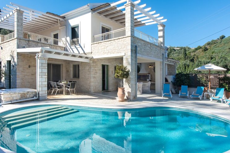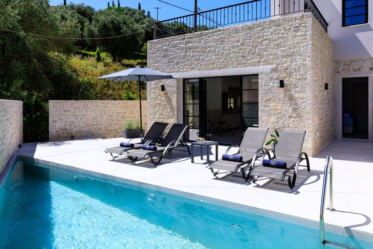 Ideal zwischen Avlaki und Coyevinas Strand gelegen, ist diese atemberaubende Villa ABOVE ideal für Familien, wunderschön gestaltet mit Privater Pool.