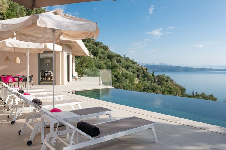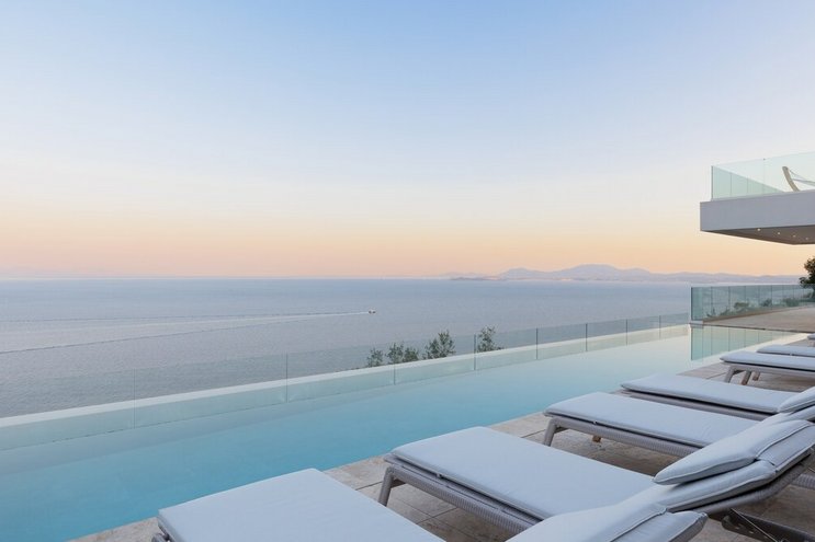 Die moderne und stilvolle Harmonia ist eine wunderschöne Villa auf Korfu mit einem großen Infinity-Pool, hervorragenden Wohnbereichen im Freien und einem unglaublichen Meerblick.