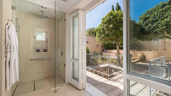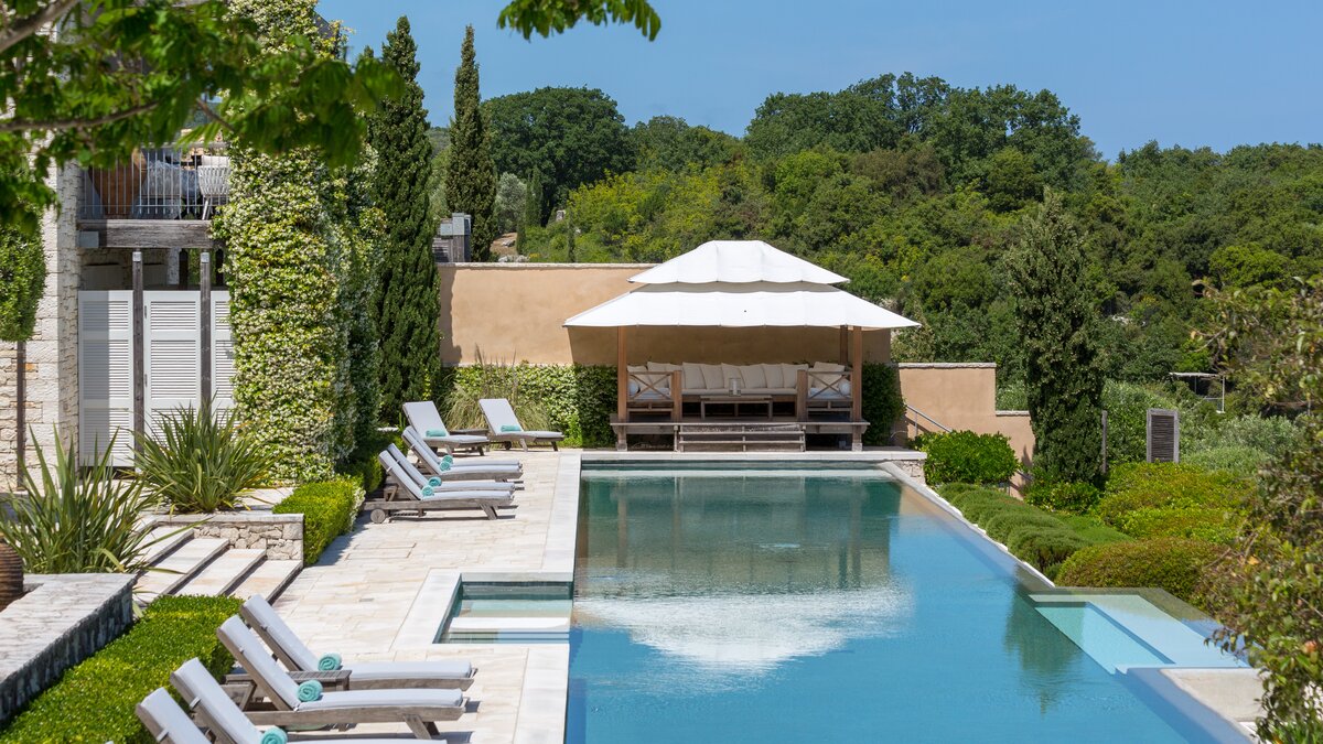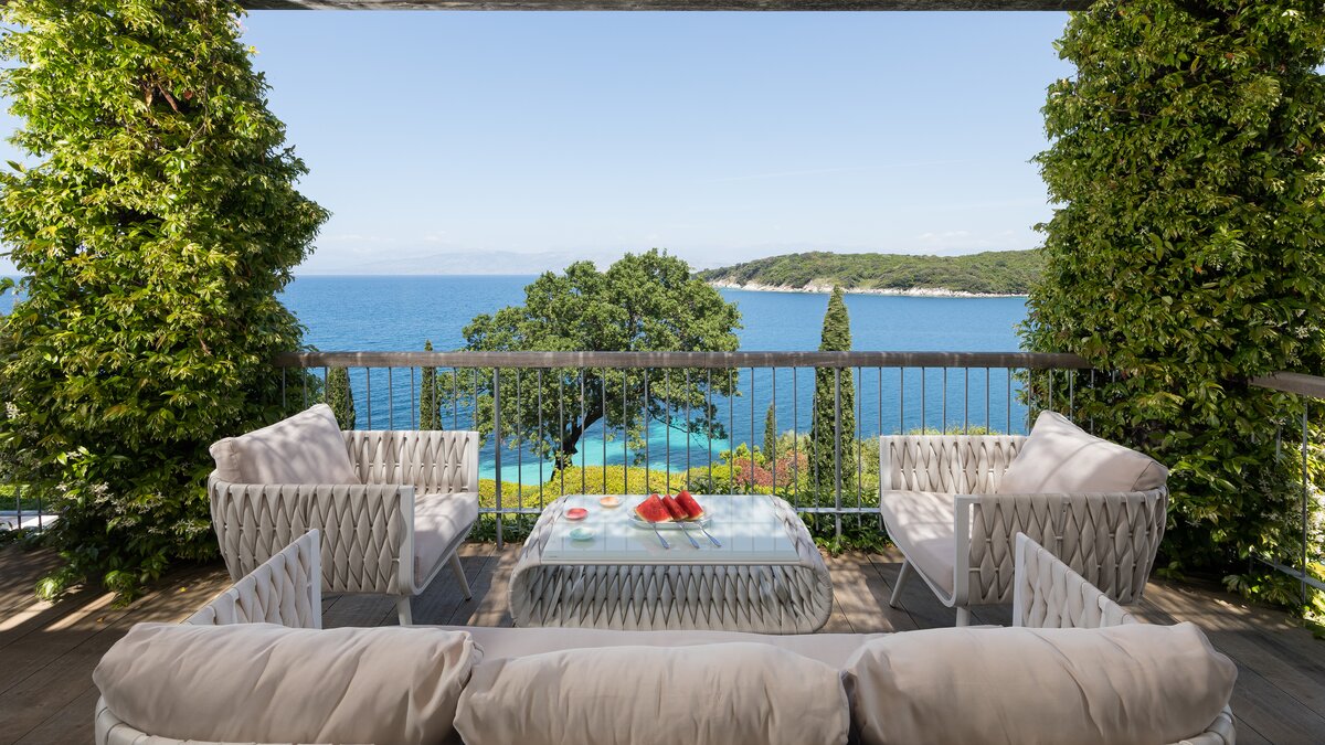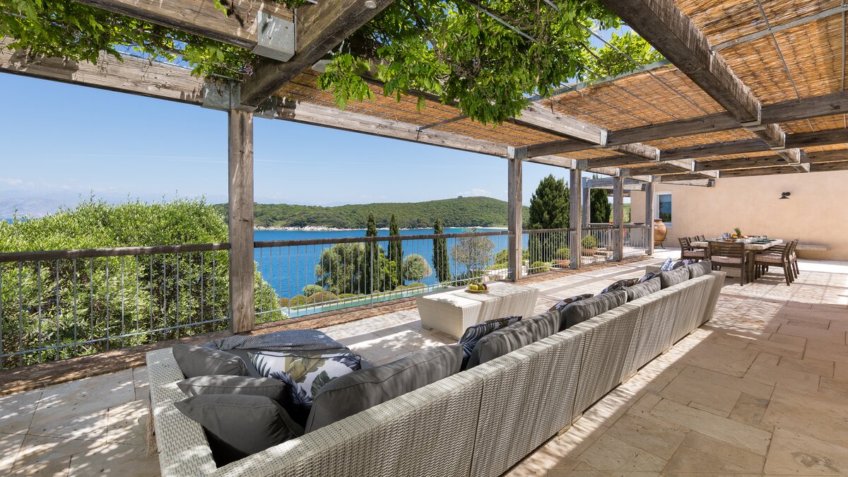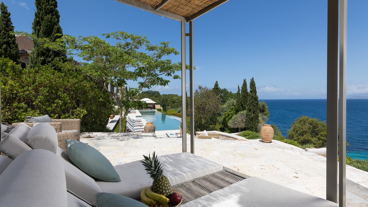 Dies ist eine wirklich bemerkenswerte Villa in jeder Hinsicht. Am offensichtlichsten ist der 40-Meter-Infinity-Pool mit seinem wunderschönen Pavillon an einem Ende und herrlichem Blick auf die Bucht darunter. Dessen Steinvilla ist hervorragend für Freizeit und Luxus konzipiert und besteht aus drei Gebäuden im Pavillon-Stil, von denen jedes seinen eigenen Blick auf das Meer und das Festland dahinter hat. Allen sind von duftenden Kräutergärten und weitläufigen Terrassen umgeben, die stilvoll eingerichtet sind, um im Freien zu speisen und zu entspannen, und Wege führen hinunter zu zwei Kiesstränden und einer Yoga-Plattform über dem Wasser.