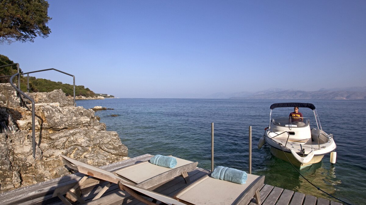 Das schicke Interieur des Amarea ist ein hervorragender Ort für eine Gruppe von Freunden und umfasst ein wunderschönes Wohnzimmer mit einem riesigen Steinkamin und vier Schlafzimmer, von denen die Master-Suite einen privaten Innenhof mit Außendusche bietet. Dessen Haus teilt sich einen schönen Tennisplatz und einen privaten Steg mit seiner Schwestervilla OPHELIA. Restaurants und in Avlaki sind bequem zu Fuß erreichbar.