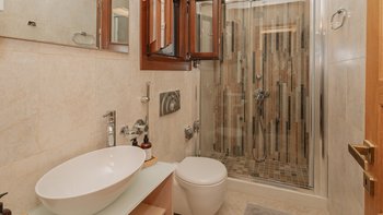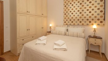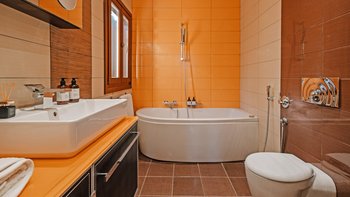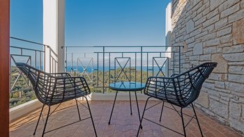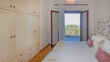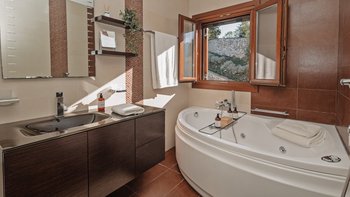 Jacuzzi-Badewannen und Hydromassage-Duschen sind Teil der hochwertigen Ausstattung der sechs Schlafzimmer der Villa, und jede der drei Etagen führt zu einer möblierten Terrasse. Draußen führen Steintreppen hinunter zum Tennisplatz mit Flutlicht (nicht groß) und hinauf zum fabelhaften Infinity-Pool mit Jacuzzi- und Kinderplanschbecken und einem Poolhaus mit Dusche, Außenküche und schattigem Essbereich im Freien. Anilia befindet sich in ruhiger Lage 3 km vom Strand Avlaki und 6 km von St. Stephano entfernt.