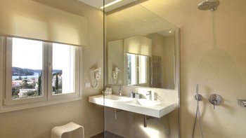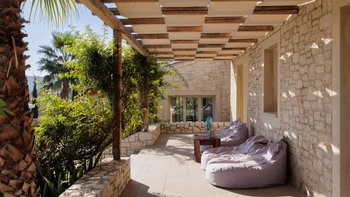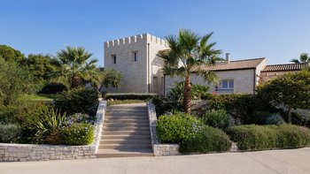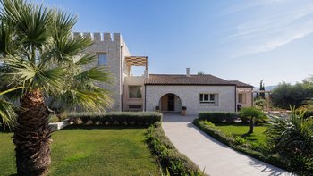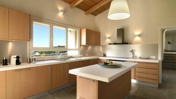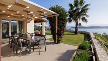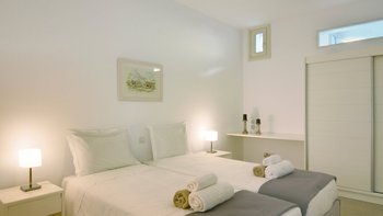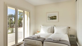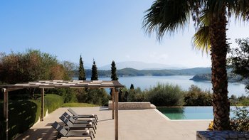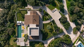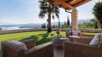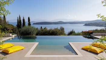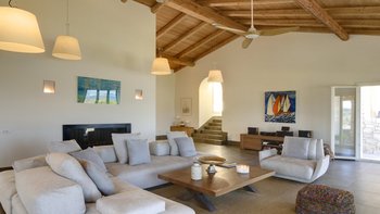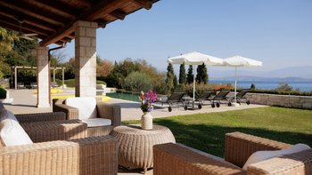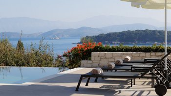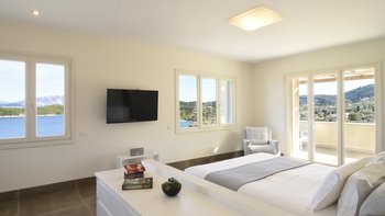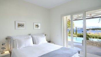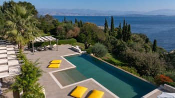 Das Hauptschlafzimmer befindet sich im ersten Stock und verfügt über ein eigenes Duschbad und einen Balkon. Dessen Haus ist mit der neuesten Technik ausgestattet, darunter Plasma-TVs in 5 der 6 Schlafzimmer, Verdunkelungsrollos, WLAN und Tablets für die Gäste, eine PS3 und ein Kinoraum mit einem 55-Zoll-Fernseher. Es gibt ein Sonos-Musiksystem, mit dem Nutzer Radiosender, Shows und Podcasts aus der ganzen Welt hören, Apps wie Spotify nutzen oder ihre persönlichen Musiksammlungen hören können. Es ist auch das erste Haus auf Korfu, das das Control 4-System implementiert hat, ein Smart-House-System, mit dem die Gäste Temperatur, Licht und Shutter über die mitgelieferten Tablets einfach steuern können. Die Hauptattraktion ist jedoch der atemberaubende Infinity-Pool mit spektakulärem Meerblick. Der Pool und die umliegende Terrasse ist der perfekte Ort, um die griechische Sonne zu genießen oder einen Sundowner am Ende eines weiteren erholsamen Tages zu genießen.