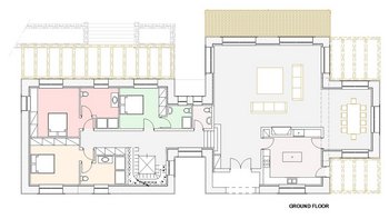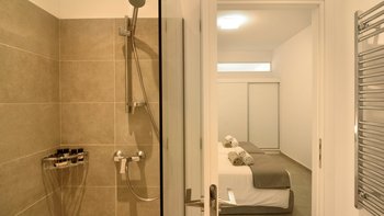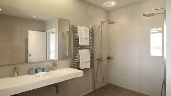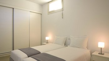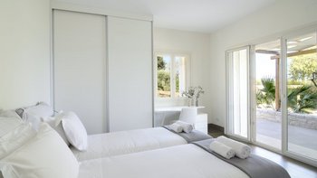 Es gibt drei Schlafzimmer im Erdgeschoss, alle mit eigenem Bad mit Dusche. Zwei dieser Schlafzimmer öffnen sich zur Poolterrasse, während das dritte zu den Gärten an der Vorderseite des Hauses führt. Im unteren Erdgeschoss befinden sich zwei weitere Schlafzimmer, eines mit eigenem Bad mit Dusche und eines mit eigenem Bad, sowie ein Fitnessstudio und ein Heimkino.