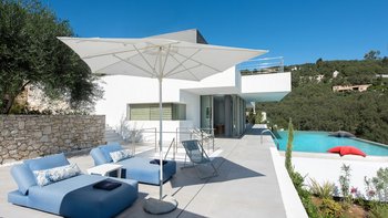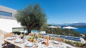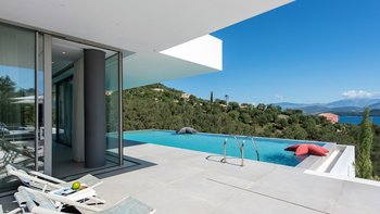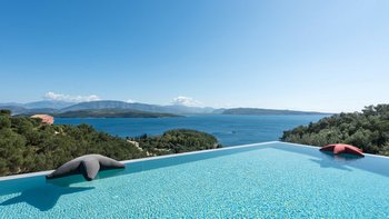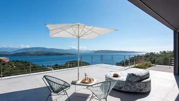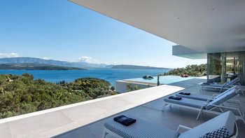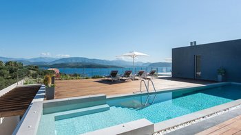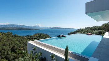 Das Benessere Rock House ist eine elegante, moderne Villa in Kerasia, Korfu, mit zwei separaten Pools und einem unglaublichen Blick auf das Meer. Es ist ideal für Familien oder Gruppen von Freunden.