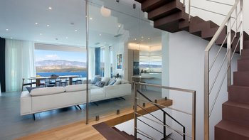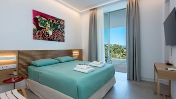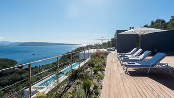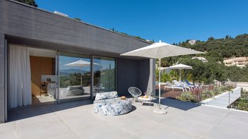 Benessere Rock House ist ein atemberaubendes, brandneues Anwesen auf einem Hügel in Kerasia, Korfu, und bietet eine frische Interpretation des mediterranen Lebens. Diese beeindruckende Villa ist perfekt für Familien oder Gruppen von Freunden, die einen modernen Rückzugsort suchen. Mit zwei Swimmingpools, darunter ein einzigartiges Sportbecken auf dem Dach, neben einem Fitnessstudio und atemberaubendem Meerblick hebt sich Benessere Rock House durch seine moderne Architektur und modernste Technik von den traditionellen korfiotischen Villen ab. Dessen großzügige Aufteilung und die gut proportionierten Schlafzimmer machen es ideal für größere Gruppen, während die verschiedenen Sitzbereiche im Freien und der sonnenverwöhnte Speiseraum reichlich Gelegenheit bieten, Küstenpanoramen in geselliger Atmosphäre zu bewundern.