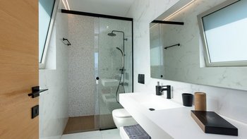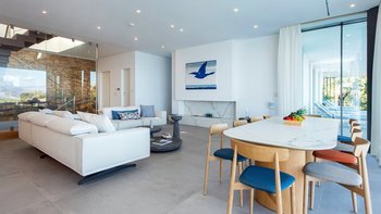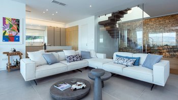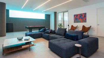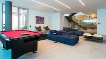 Beim Betreten der Villa werden die Gäste von einem eleganten, modernen Interieur begrüßt, das Raffinesse ausstrahlt. Für Fitness-Liebhaber bietet das Home-Fitnessstudio reichlich Platz für Bewegung oder sogar Meditation. Dessen helle und luftige Wohnzimmer öffnet sich auf einen beeindruckenden Infinity-Pool, der ein nahtloses Innen- und Außenleben schafft. Im unteren Erdgeschoss blickt das geräumige Spielzimmer von unten auf den Pool und bietet eine einzigartige Perspektive von innen. Jedes Zimmer ist großzügig geschnitten und mit modernem Flair eingerichtet, um allen Gästen während ihres Aufenthalts Komfort zu bieten. Auf der obersten Etage hat das Hauptschlafzimmer direkten Zugang zum Pool auf dem Dach – perfekt für diejenigen, die ihren Tag mit einem erfrischenden Bad beginnen möchten.