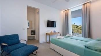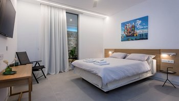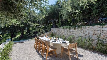 Das Benessere Rock House glänzt wirklich mit seinen unglaublichen Außenbereichen, die mit Sitzbereichen und Sonnenliegen geschmückt sind. Der Hauptpool ragt zum Wasser hinaus und bietet ein unvergleichliches Badeerlebnis mit dem Ionischen Meer als Kulisse. Mehrere Terrassen und Liegebereiche sind strategisch platziert, um das Beste aus dieser spektakulären Aussicht zu machen, egal ob Sie sich sonnen, ein frisches Essen im Freien genießen oder einfach nur mit einem Buch entspannen. Besonders hervorzuheben ist der Essbereich im Freien, der einen sonnenverwöhnten Ort für unvergessliche Mahlzeiten in einer Küstenumgebung bietet. Während das Benessere Rock House als Ihre eigene private Oase dient, ist es auch günstig gelegen, um die vielen Reize Korfus zu erkunden. Der malerische Strand von Kerasia ist nur einen Steinwurf entfernt und die pulsierenden Städte St. Stephanos und Kassiopi mit ihren Tavernen und Geschäften sind leicht zu erreichen, so dass Sie während Ihres Aufenthalts das Gute aus beiden Welten erleben können.