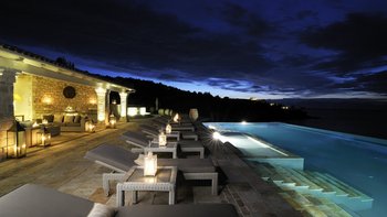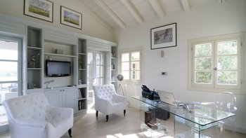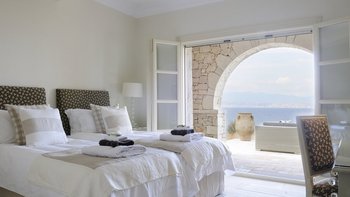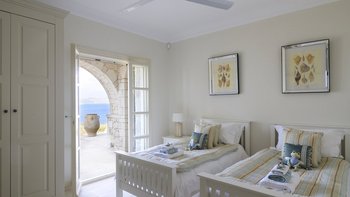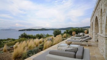 Innerhalb des Hauses vervollständigen ein Kinoraum, ein Fitnessraum, eine Sauna und ein Dampfbad die sieben Schlafzimmer; und der Concierge-, Haushälterinnen- und Küchenchef-Service (inklusiv für 2019) sorgen für ein zusätzliches Maß an luxuriöser Freizeit. Draußen bietet sich ein atemberaubender Infinity-Pool mit Blick auf das Meer, der von einem üppigen Poolhaus bedient wird, und ein Netz von Wegen führt zu einem Kieselstrand und zu einem Steg, der mit der Schwestervilla, dem Atolikos House, geteilt wird. Dieser idyllische Rückzugsort ist nur 15 Minuten zu Fuß von Kassiopi entfernt.