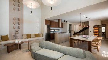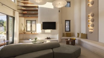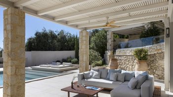 Eine fabelhafte Wahl für eine Gruppe von Freunden, diese sehr moderne Villa ist elegant in neutralen Farben mit einem Hauch von aufgeräumter Einfachheit eingerichtet. Deren Villa verfügt über drei Doppel- und drei Zweibettschlafzimmer, die Master-Suite komplett mit einer Hydromassage-Badewanne für zwei Personen. Deren geräumige Wohn-/Esszimmer verfügt über eine Küche im Inselstil und öffnet sich auf einer schattigen Veranda mit Blick auf den 10-Meter-Pool zu Sitz- und Essbereichen im Freien. Und mit Liegestühlen auf der Poolterrasse, gepolsterten Sitzgelegenheiten aus Holz auf der Sonnenterrasse, einem gut ausgestatteten Grillplatz und einer erhöhten Ess-Pergola, um die Aussicht zu genießen, ist für das Leben im Freien sehr komfortabel gesorgt.