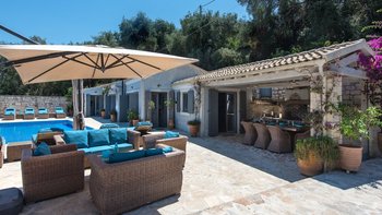 Mit den charmanten Tavernen, Geschäften und Cafés von St. Stephanos nur 200 m entfernt und Kassiopis pulsierenden Restaurants und Nachtleben nur 6 km entlang der Küste bietet Elle einen idyllischen Rückzugsort auf Korfio, in dem alles in Reichweite ist.