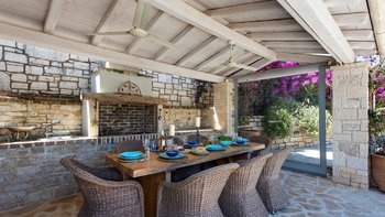 Im Außenbereich befindet sich der 10 m x 4 m große private Pool zwischen Liegestühlen und einem schattigen Grillplatz, der zu entspannten Tagen unter der Sonne einlädt. Elle umfasst einen Reinigungsservice an drei Tagen pro Woche mit optionalem Kochservice, Lebensmitteleinkauf vor der Ankunft und Wellnessbehandlungen in der Villa gegen Aufpreis.