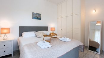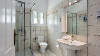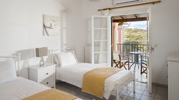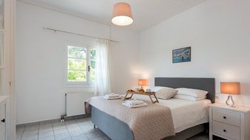 Die Lage ist privat und friedlich, fast an der Spitze eines Vorgebirges eines Olivenhains, mit herrlichem Blick direkt auf das Meer und die Bucht hinunter zum Dorf und mit einem Hauch von wunderbar ungestörtem Nichtstun. Dennoch ist diese hübsche rosafarbene Villa nur zehn Minuten zu Fuß von den Geschäften, dem Strand und den Restaurants am Wasser des kleinen St. Stephano und eine kurze Fahrt vom Tennisplatz in Kassiopi und ausgezeichneten Wassersportmöglichkeiten an der breiten Bucht von Kalami entfernt. Deren einstöckige Villa ist eine gute Wahl für einen Familienurlaub und verfügt über ein Doppel- und zwei Zweibettschlafzimmer, jedes mit Klimaanlage.
