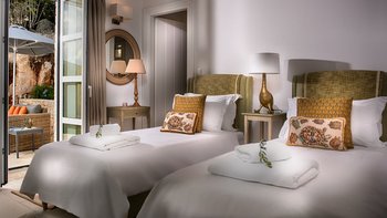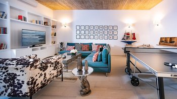 Inside Gaia ist hervorragend für eine Gruppe von sechs Personen konzipiert, wobei Stil und Komfort gleichermaßen gewährleistet sind. Denen Gäste werden einen OFFENER GRUNDRISS Wohnraum mit bequemen Sitzgelegenheiten und ein Esszimmer in einem Gemeinschaftsraum sowie eine voll ausgestattete Küche genießen. Zwei Zweibettschlafzimmer mit eigenem Bad befinden sich im Erdgeschoss, während sich die Master-Suite im unteren Erdgeschoss mit dem Spielzimmer befindet. Der Concierge-Service ist ein zusätzlicher Luxus im Gaia, wo ein unglaubliches Team eine Auswahl an zusätzlichen Extras arrangieren und dafür sorgen kann, dass die Gäste sehr gut betreut werden. Darüber hinaus kann dieses Haus zusammen mit dem Schwesterhaus Eos für 10 Personen gebucht werden und mit dem Kalamaki Bay House für Gruppen von bis zu 20 Personen, dem „Kalamaki Bay Estate“, das von einer großen zentralen Terrasse für Gruppen von 20+ und Jacuzzi profitiert. Dies ist der perfekte Rahmen für große Gruppenfeiern oder private Hochzeiten. Bitte fragen Sie uns nach weiteren Details.