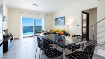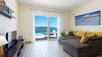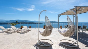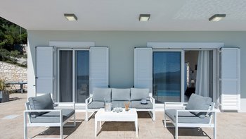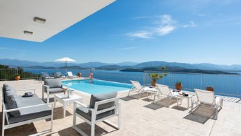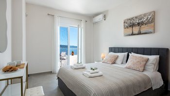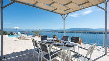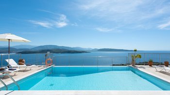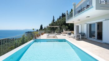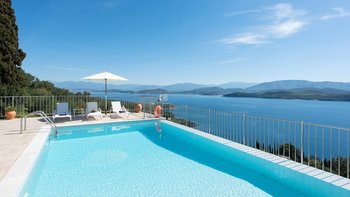 In Irida dreht sich alles um die Aussicht, herrlich gelegen mit Blick auf das Meer im Nordosten von Korfu. Eine weitläufige Terrasse umschließt die Außenseite der Villa, und neben dem Pool mit Liegestühlen und weichen Sitzgelegenheiten gibt es eine schattige Essterrasse und einen eingebauten Grill, um im Freien zu essen, sowie Tischtennis.