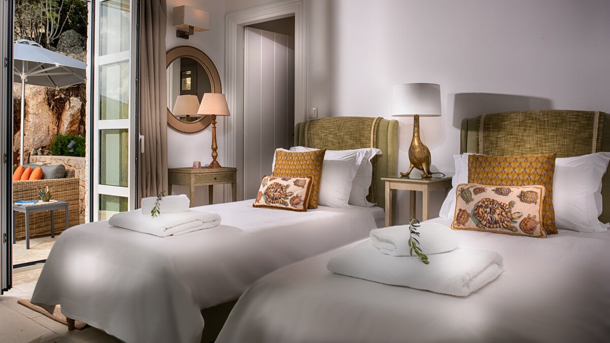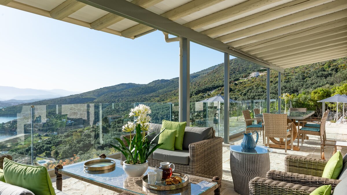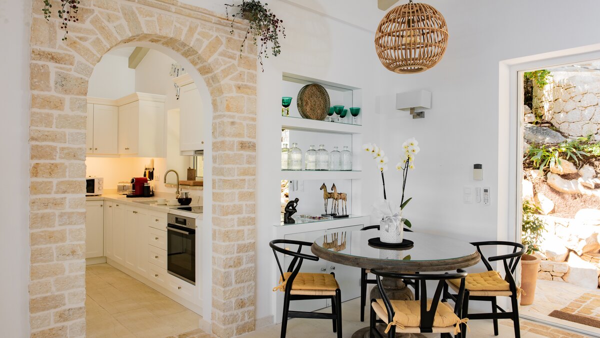 Ideal für Gäste, die als Teil einer größeren Gruppe reisen, umfasst das Kalamaki Bay Estate drei herrliche Anwesen, Kalamaki Bay House, Eos und Gaia, die Platz für bis zu 20 Gäste bieten. Dies ist der perfekte Rahmen für große Gruppenfeiern oder Hochzeiten im kleinen Kreis. Der Kalamaki Bay House bietet Platz für bis zu zehn Gäste, stilvoll in neutralen Farbtönen eingerichtet und verfügt über ein geräumiges Wohnzimmer, eine Küche/Esszimmer und einen gut ausgestatteten Medienraum. Deren Villa verfügt auch über fünf wunderschöne Schlafzimmer mit eigenem Bad und eine private Terrasse. Ein 12 Meter langer Infinity-Pool ist perfekt platziert, um die herrliche Aussicht zu genießen, verbunden mit einem Poolhaus mit Küchenzeile und Außendusche. Gaia ist ähnlich positioniert und bietet einen hervorragenden Meerblick vom Infinity-Pool aus. Die Villa bietet Platz für sechs Personen und verfügt über ein OFFENER GRUNDRISS Wohnzimmer, eine voll ausgestattete Küche und drei Schlafzimmer mit eigenem Bad. Eos ist für vier Personen ausgelegt, ein kleineres Anwesen mit ebenso atemberaubender Innenausstattung in einer warmen, neutralen Farbpalette. Ins Innere erwarten Sie ein geräumiger Wohnbereich, eine moderne Küche und zwei schöne Schlafzimmer mit unglaublichem Meerblick.
