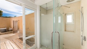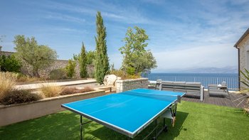 Die Terrasse auf Split Ebene ist ideal für das Leben im Freien. Ein 17 m langer Infinity-Pool mit Holzliegen am Pool und weitreichendem Meerblick nimmt den Ehrenplatz ein. Neben dem Pool gibt es einen mit einem Baldachin bedeckten Essplatz im Freien, wo Sie im Schatten speisen können, mit einem eingebauten Grill und einem Pizzaofen sowie einem Bouleplatz.
