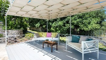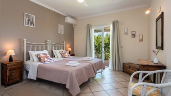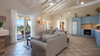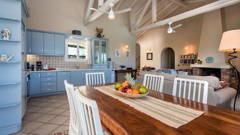 Beim Ausheben der Fundamente dieser hübschen Villa wurde ein massiver Schleifstein oder „Lithari“ ausgegraben, der dem Haus seinen Namen gibt und nun einen Blickpunkt in den wunderschönen Gärten bildet, die es umgeben. In einer klassischen korfiotischen Landschaft mit Oliven-, Feigen- und Granatapfelbäumen erhebt sich dieses große Familienhaus über seinem Freiformpool und blickt von einer überdachten Veranda, die sich entlang des Gebäudes erstreckt, auf eine ruhige Aussicht auf die Landschaft, die Küste und die Bucht. Mit kühlen Fliesenböden und hohen Dachsparren, hat ein geräumiges Wohn- / Esszimmer Türen zu diesem Wohnbereich im Freien und zu einer herrlichen Pergola. Zwei Schlafzimmer im Erdgeschoss öffnen sich ebenfalls zur Veranda, während das Haupt-Doppelzimmer im ersten Stock ein zusätzliches Maß an Privatsphäre genießt, mit einem eigenen schattigen Balkon. Eine breite Treppe und ein leicht abfallender Weg verbinden die Veranda jeweils mit dem 10-Meter-Pool, wo Rasenflächen, Liegen und eine Liege mit schönen blühenden Sträuchern abgeschirmt sind. Und diese schöne kleine Bucht der Ruhe ist etwas mehr als 1 km von Kassiopi mit Restaurants, Geschäften, Nachtleben und Bootsverleih und 3 km vom Avlaki-Strand entfernt.