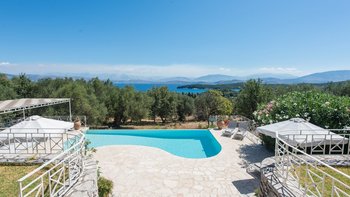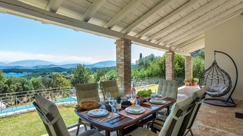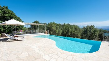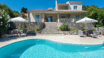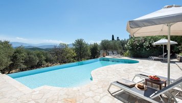 Diese geräumige Familienvilla auf Korfu liegt eingebettet in üppige Gärten und bietet einen einladenden Infinity-Pool und eine hypnotische Aussicht. Idealerweise ist die ruhige Lage auch nur wenige Schritte von Kassiopi entfernt.