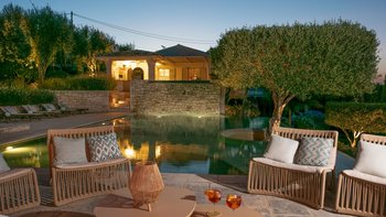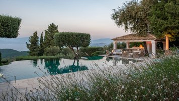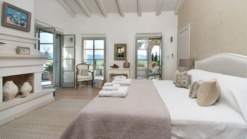 Im Mittelpunkt dieser bemerkenswerten Villa steht ein Freiformpool, der von einem rustikalen Steinwasserfall gespeist wird und sich um alte Olivenbäume windet, so dass er sich wie ein Felsenpool in einer Waldlichtung an der Küste anfühlt. Vom Haus aus und von großzügigen und möblierten Terrassen aus scheint der Pool von seinem Infinity-Rand ins Meer zu fließen, wo sich der Strand und die Tavernen und Tavernen von Avlaki befinden. Der Hafen und die Restaurants und St. Stephano sind ebenfalls leicht zu erreichen. Der Villa liegt sehr privat und bietet außergewöhnlichen Komfort und Service, während seine geräumigen und geräumigen Innenräume eine intime und entspannte Atmosphäre schaffenund
