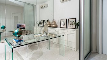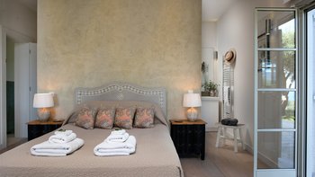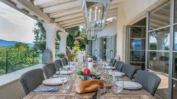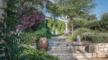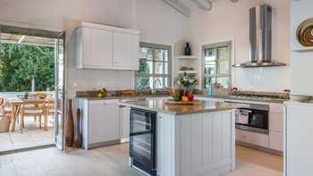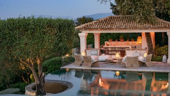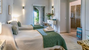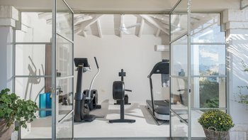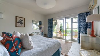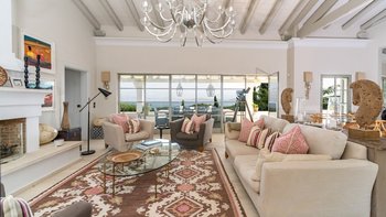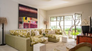 Erdige Kreide- und Lehmtöne bilden eine gedämpfte Kulisse für üppige Stoffe und eklektische Kunstwerke, zeitgenössische Möbel werden mit Vintage-Stücken versetzt. Mit den Dienstleistungen einer Haushälterin verfügt die Villa über fünf Schlafzimmer mit Bad, einen Fitnessraum, ein Büro, eine luftige Küche / Wohn- / Esszimmer und ein entspannendes TV / Wohnzimmer.