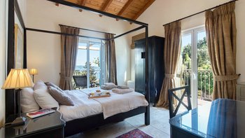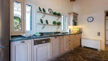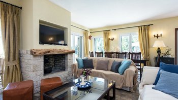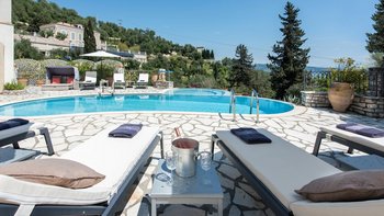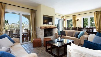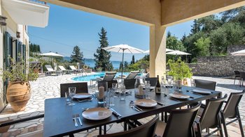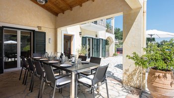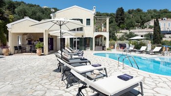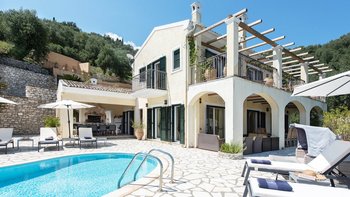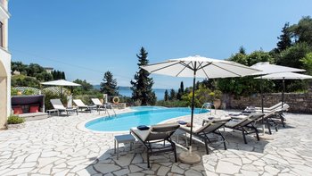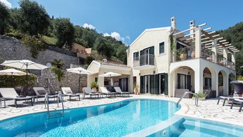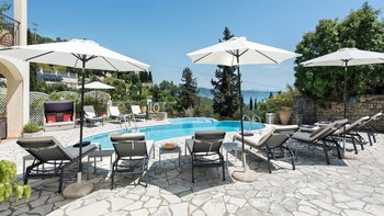 Zweifellos steht der Mittelpunkt dieser entzückenden Familienvilla auf Korfu. Dessen geräumige Terrassen umrahmen einen Freiform-Infinity-Pool und einen Jacuzzi, die in den kühleren Monaten beheizt und während der ganzen Saison unwiderstehlich einladend sind. Ausgestattet mit vielen Sonnenliegen, wird der Pool von einem Sitzbereich im Freien auf der schattigen vorderen Terrasse und einem Esszimmer im Freien und einem Grill direkt von der Küche aus gesehen, die jeweils den Komfort des offenen Wohn- und Esszimmers im Haus widerspiegeln. Dieser große Villa ist durchgehend klimatisiert und bietet einen Kochservice für echte Entspannung. Sie bietet eine überraschend intime Atmosphäre, die durch eine geschmackvolle Einrichtung in sanften Naturtönen unterstrichen wird.