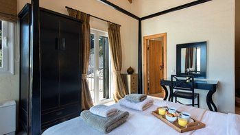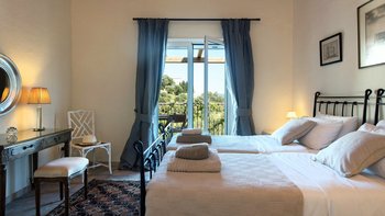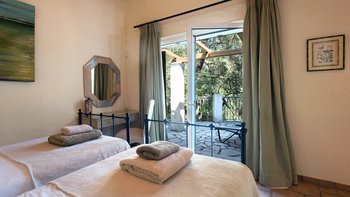 Es ist ein gut geplantes Haus für Familien und verfügt über drei Zweibett- und zwei Himmelzimmer, von denen jedes zur Terrasse oder zum Balkon führt. Mokoras liegt in einer Falte der bewaldeten Küstenhänge ruhig und genießt verlockende Blicke über die Bäume bis zum Meer. Denen Geschäfte in Agni, der mit der Blauen Flagge ausgezeichnete Strand des geschäftigen Kalami und die hübsche Kieselbucht von Yialiskari sind alle etwa zehn Minuten zu Fuß entfernt. Während der Weg zurück zur Villa bergauf verläuft, ist es ein malerischer, belebender Spaziergang, der sich durch die bewaldeten Hänge schlängelt und Sie letztendlich mit den ruhigen Terrassen der Villa und dem atemberaubenden Meerblick belohnt, ein Merkmal, das Mokoras’ Charme und Abgeschiedenheit nur noch verstärkt.