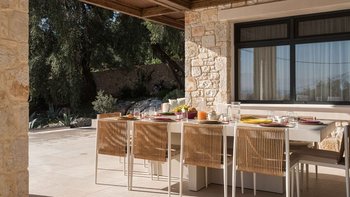 Die zweistöckige Villa verfügt über eine helle Inneneinrichtung mit kahlen Steinmauern, eine sehr moderne Küche mit offenem Schnitt zum Wohn-/Esszimmer und die fünf attraktiven Schlafzimmer verfügen alle über eine Klimaanlage. Ein weiteres Schlafzimmer mit Doppelbett befindet sich im Gästehaus, das Nähe und Privatsphäre perfekt verbindet und mit einem Bad und einer Küchenzeile ausgestattet ist. Dieser sehr einladende Villa liegt nur 2 km vom Hafen von St. Stephano und dem Strand von Avlaki und eine kurze Fahrt vom Nachtleben in Kassiopi und den Wassersportmöglichkeiten in Kalami entfernt.