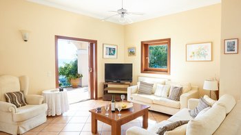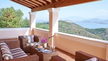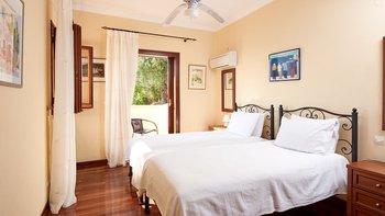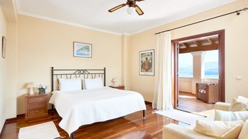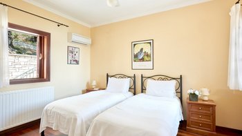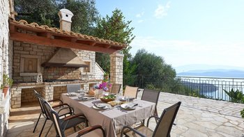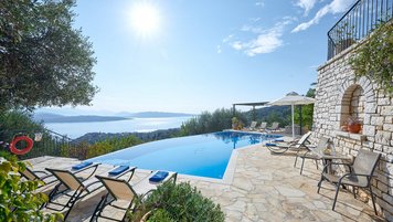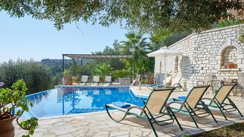 Weniger als zwei Kilometer von den Tavernen am Wasser des bezaubernden St. Stephano entfernt, befindet sich diese Familienvilla auf einem Hügel mit Blick auf den Hafen. Von den geräumigen Zimmern und den sonnigen Terrassen aus hat man einen eindrucksvollen Blick auf die Hufeisenbucht. Umgeben von Olivenhainen mit Silberblättern und über eine ziemlich steile Auffahrt erreicht man die Villa mit einem Gefühl abgeschiedener Privatsphäre. Denen Bars und das Nachtleben von Kassiopi sind leicht zu erreichen. Vom Strand von Avlaki aus kann man Segeln und Windsurfen. Ebenso attraktiv für Familien oder Gruppen von Freunden, verfügt das Nepenthe über zwei Doppel- und zwei Zweibettschlafzimmer im OBERSTE ETAGE, alle mit Klimaanlage und eigenem Bad oder Dusche.In Erdgeschoss befinden sich eine elegante und gut ausgestattete Küche und ein luftiges Wohnzimmer mit großen Sofas und einem kühlen Fliesenboden. Von hier aus gelangen Sie auf die Hauptterrasse, die bequem als Wohn-/Esszimmer im Freien eingerichtet ist. Von hier aus führen Stufen hinunter zum 12 Meter langen Infinity-Pool und der Pergola am Pool. Des Haus verfügt über einen eingebauten Grill und Kochservice könnte das gemütliche Tempo verbessern.