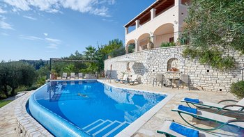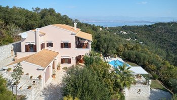 Ein imposantes Haus mit einem großen Pool und einer herrlichen Aussicht von den möblierten Terrassen, ist dies eine schöne Villa im Herzen der Nordostküste von Korfu.