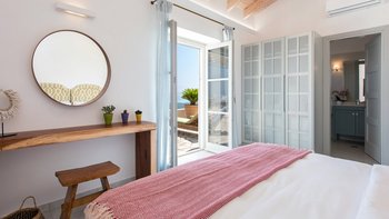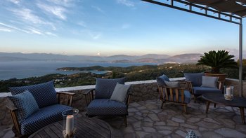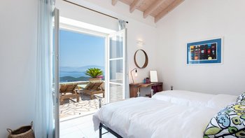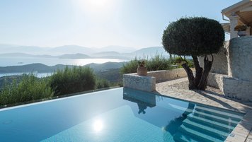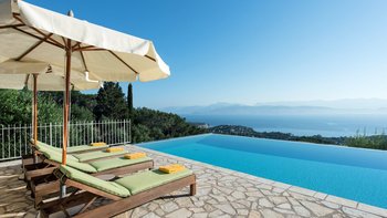 Oleander ist eine Villa mit fünf Schlafzimmern inmitten von Olivenhainen an der Nordostküste Korfus und bietet einen magischen Blick auf das Meer auf die donnerspaltenden Gipfel der albanischen Ceraunischen Berge, die über die Straße von Korfu zu sehen sind. Mit geräumigen umlaufenden Terrassen und ausgezeichneten Essbereichen im Freien ist diese Villa für den geselligen Reisenden konzipiert, was sie ideal für Familien und kleine Gruppen von Freunden macht. Es gibt sogar eine Katze in der Villa, genannt Feta.