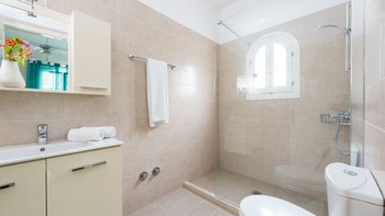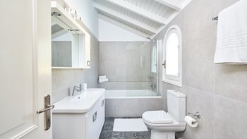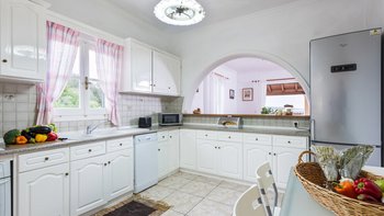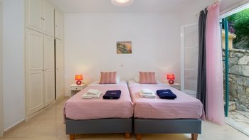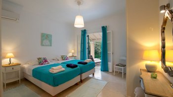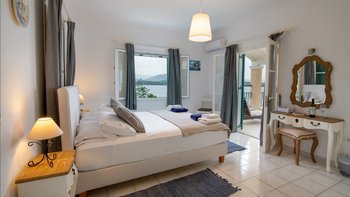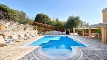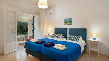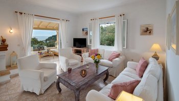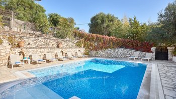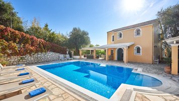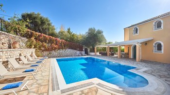 Ein traditionelles korfiotisches Landhaus, in herrlicher Nähe zum Meer, ist diese entspannende Villa in einem ruhigen Inseltempo eingehüllt. Innerhalb des Hauses ist die Unterkunft großzügig bemessen und einfach für Komfort eingerichtet. Im Erdgeschoss ist das geräumige Wohn-/Esszimmer kühl und hell, mit frischem weißem Dekor und Türen zu einer Terrasse im Freien. Deren obere Etage ist eine private Oase für das Schlafzimmer mit Doppelbett, das sich auf einen großen Balkon mit gepolsterten Sitzgelegenheiten und herrlicher Aussicht öffnet; während drei Zweibett-Schlafzimmer das untere Erdgeschoss einnehmen. Im Außenbereich gibt es mehrere Terrassen, die fast von morgens bis abends die Sonne einfangen, eine schöne Veranda, die natürlich in üppigem Grün abgeschirmt ist und zum Entspannen und Essen eingerichtet ist, eine ummauerte und sonnenverwöhnte Terrasse umschließt den acht Meter langen Swimmingpool und ein Grillplatz ist vom Haus aus leicht zu erreichen. Ein Pfad vom Garten führt hinunter zu einer Badeplattform auf der rechten Seite des Meeres, wo Olympia sich das Wasser mit der Schwestervilla Gallini teilt. Der Strand von Kerasia und der Hafen von St. Stephano sind beide leicht zu Fuß erreichbar.