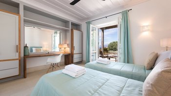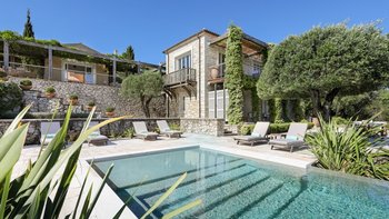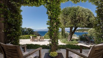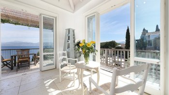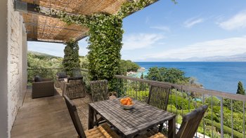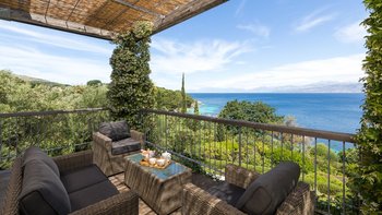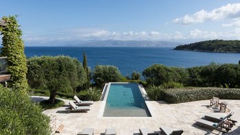 Ein herrliches Haus in einer atemberaubenden Umgebung direkt über dem Meer, diese Luxusvilla auf Korfu ist geschickt entworfen, um sehr modernen Komfort mit bezauberndem Inselcharakter zu verbinden.