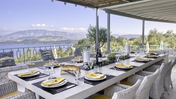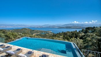 Peristera House ist eine atemberaubende Luxusvilla mit Blick auf das wunderschöne Ionische Meer. Deren Villa wurde für das Leben im Freien entworfen und verfügt über einen privaten Infinity-Pool mit atemberaubender Aussicht, eine außergewöhnliche Panoramaterrasse mit einem Esstisch für faule Mahlzeiten im Freien und zahlreiche Sitzbereiche, in denen sich die Gäste entspannen können, während sie über die weite Landschaft blicken. Diese moderne Villa erstreckt sich über zwei Ebenen und verbindet auf perfekte Weise traditionelle und moderne Stile mit aus Stein erbauten Außenbereichen, Kochtöpfeziegeldächern und einer einzigartigen Innenarchitektur. Ins Innere ist das Peristera House in einem frischen weißen Dekor in neutralen Farbtönen eingerichtet, mit Holzbalkendecken, modernen Einrichtungen und viel Gemeinschaftsraum im gesamten Gebäude. Das Erdgeschoss verfügt über eine offene Küche, ein Wohn- und Esszimmer mit direktem Zugang zur Terrasse und zwei Doppelschlafzimmer mit Bad en suite. Im Erdgeschoss befinden sich das Hauptschlafzimmer mit eigenem Bad und drei Doppelschlafzimmer mit Dusche en suite. Ein exklusiver Kinoraum, ein Fitnessraum, ein Spa und ein Weinkeller vervollständigen das Anwesen. Nur einen kurzen Spaziergang von einem Supermarkt in Sinies entfernt, ist die Villa auch in der Nähe von Geschäften, Tavernen und einem Strand in St. Stephano. Kassiopi, Avlaki und Kalami mit all ihren Annehmlichkeiten sind nur eine kurze Autofahrt entfernt.