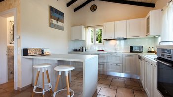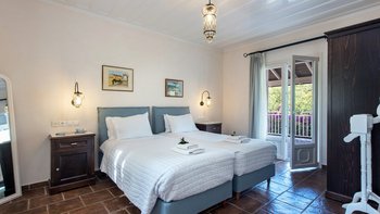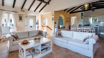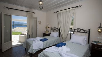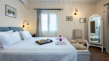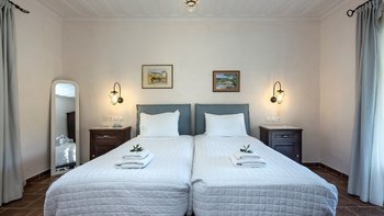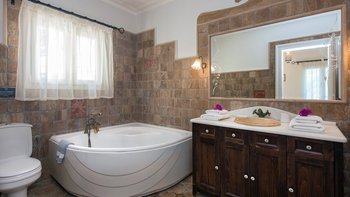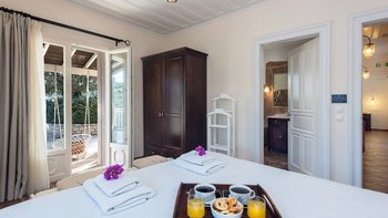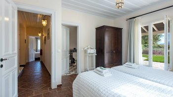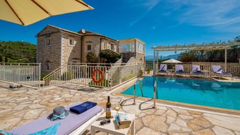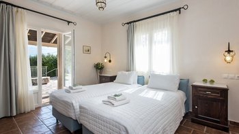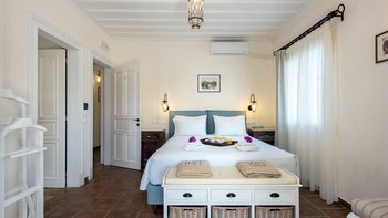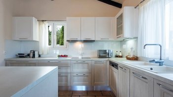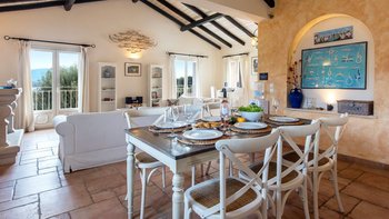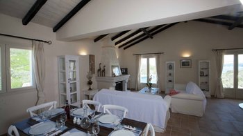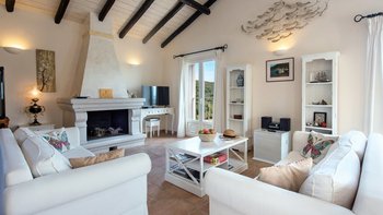 Ruhig auf einem bewaldeten Hang hinter dem Dorf gelegen, ist diese komfortable Familienvilla nur fünf Minuten zu Fuß vom Strand von St. Stephano entfernt und noch näher an seinen Geschäften, Bars und Tavernen am Wasser. Kürzlich in einer kühlen, neutralen Farbpalette renoviert, handelt es sich um ein auf den Kopf gestelltes Haus mit einem Wohnbereich in der oberen Etage, um die herrliche Aussicht zu genießen, und seinen drei klimatisierten Schlafzimmern, die sich das Erdgeschoß teilen. Innerhalb der Villa sind Dekor und Einrichtung im unprätentiösen Landhausstil gehalten, ergänzt durch moderne Annehmlichkeiten wie WLAN und Großbild-Satellitenfernsehen. Draußen gelangt man vom Wohnzimmer aus auf eine offene Terrasse, die sich ideal zum Essen im Freien eignet, mit Blick über die Dächer bis zur Bucht darunter. Eine Außentreppe führt von hier hinunter zu einer gepflasterten Terrasse, wo sich der einladende Pool den Raum mit einem separaten Jacuzzi und einem eingebauten Grill teilt. Ans andere Ende des Hauses warf ein Olivenbaum Schatten auf einen kleinen Sitzbereich mit Blick auf das Meer. Während Petrino die entspannende Atmosphäre der Umgebung widerspiegelt, ist es gut positioniert, um lokal up-the-tempo zu sein, mit dem Nachtleben in Kassiopi nur 5 km entfernt.