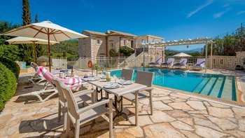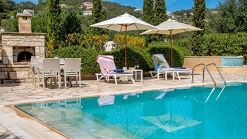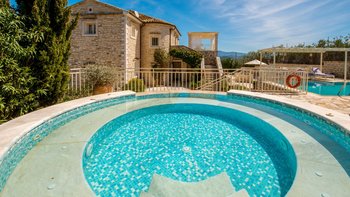 Ein markantes Haus mit Pool, Jacuzzi und herrlicher Aussicht, dies ist eine schöne Villa im Herzen der Ansammlung von Dörfern im Nordosten von Korfu und nur 300 m vom malerischen Hafen von St. Stephano entfernt.