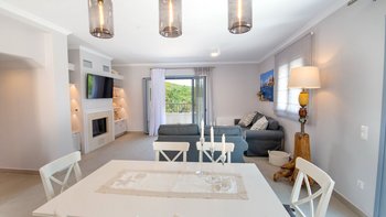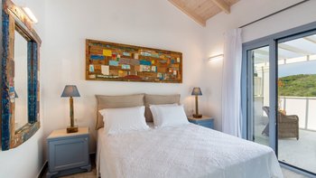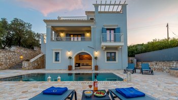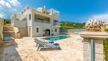 Pythaia genießt eine herrliche Hanglage und ist nur 300 m vom Hafen von St. Stephano entfernt, dem Herz des Dorfes mit Restaurants, Bars und Geschäften am Wasser und 400 M vom Strand entfernt. St. Stephano verkörpert entspanntes Leben auf Korfu und die schönen Terrassen von Pythaia bieten einen Blick auf die belebte Uferpromenade im Zentrum des Dorflebens. Trotz der Nähe zum Dorf bietet Pythaia viel Platz im Freien. Dessen Highlight ist der schöne Pool auf der sonnigen unteren Terrasse und das angrenzende Poolhaus mit eingebautem Sitzbereich und separatem Fernsehraum mit PlayStation, einem idealen Rückzugsort für ältere Kinder. Einige Stufen hinauf, hat die Terrasse rund um das Haupthaus einen im Freien eingebauten Frühstückstisch für 6 Personen mit Meerblick über St. Stephano und dahinter eine Sommerküche, eingebauter Grill und zweiter Essplatz auf der Rückseite des Hauses. Im Erdgeschoss der Villa befindet sich ein offenes Grundriss Wohnzimmer und eine moderne Küche mit Türen, die zur Seitenterrasse mit Frühstückstisch und nach vorne, einem großen Balkon mit Meerblick führen. Ebenfalls im Erdgeschoss befindet sich ein Zweibettzimmer (kann doppelt sein) mit eigener Dusche mit Blick auf das Meer und ein Zweibettzimmer mit angrenzender Dusche mit Blick auf die Terrasse. Im ersten Stock befindet sich das Hauptschlafzimmer mit eigenem Duschbad, das zu einem privaten Balkon mit herrlichem Meerblick führt. Von der ersten Etage aus öffnet sich eine zweite Terrasse, die allen Gästen zur Verfügung steht, um die atemberaubende Aussicht zu genießen. Das Pythaia ist ein modernes Hotel, das stilvoll in einem modernen Stil eingerichtet ist.