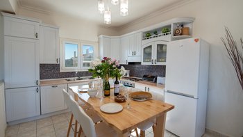 Das San Stephanos House ist ein schönes Familienhotel in fantastischer Lage, nur wenige Schritte von Tavernen, Bars und Geschäften im lebhaften St. Stephano entfernt. Das Innere des Hauses ist hell und geräumig, mit einem offenen Wohnbereich und vier Schlafzimmern en suite. Der offene Grundriss Küche, Ess- und Sitzbereich befindet sich im ersten Stock mit herrlichem Blick über die Bucht von St. Stephano und öffnet sich auf eine große Terrasse mit viel Platz für 8 Personen, um das Frühstück im Freien zu genießen. Draußen bietet eine geräumige Terrasse einen weiten Blick auf das Meer und der hübsche Pool ist beheizt, was dieses Anwesen zu einer großartigen Wahl für einen Kurzurlaub in der Nebensaison sowie im Sommer macht. Der hübsche Kerasia Strand ist auch nur 1,6 km von der Villa entfernt, und das Haus ist perfekt aufgestellt, um die Küste im Nordosten von Korfu zu erkunden.