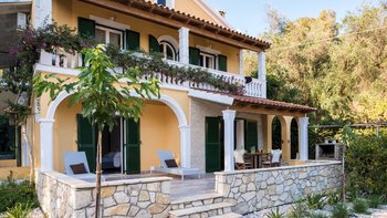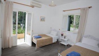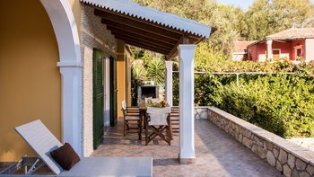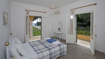 Mit ihren in Pfirsichfarben getünchten Wänden, ihren Fenstern in traditionelles Grün getünchten Fenstern und ihrem Grundstück, einer Oase aus Weinreben, alten Olivenbäumen und Bauerngartenblumen, ist diese einladende Villa ein klassischer Korfu. Aber die Lage direkt an einem der besten Strände der Insel macht sie weit vom Standard entfernt. Deren zweistöckige Villa befindet sich im Besitz einer einheimischen Familie, die seit jeher den Komfort ihrer Gäste zur Priorität gemacht hat. Sie besteht aus zwei sehr ähnlichen, unabhängigen Apartments, eines auf jeder Etage, die jeweils über einen separaten Zugang und einen großen schattigen Balkon/Terrasse verfügen. Wenn das Haus als Ganze gebucht wird, ist es perfekt für zwei Familien, die zusammen Urlaub machen und jeder Familie ein gewisses Maß an Privatsphäre geben. Denen beiden Wohnungen teilen sich die Einrichtungen im Garten, darunter ein großzügiger Swimmingpool und ein eingebauten Grill. Der Sophia Lower Apartment ist gemütlich und aufgeräumt eingerichtet und verfügt über ein geräumiges offenes Wohn-/Esszimmer mit Terrakotta-Fliesen und Türen zur überdachten Terrasse und zwei Schlafzimmer, jedes mit Klimaanlage. Es gibt Liegestühle am Kerasia Strand direkt vor der Haustür. Die UPPER und Lower Apartments können separat oder zusammen gebucht werden.