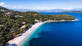Mit einer Strandlage, die kaum zu übertreffen wäre, verfügt diese Familienvilla auf Korfu über ein Gartentor direkt an der Kieselküste von Kerasia und ist nur wenige Schritte vom Hafen von St. Stephano entfernt.