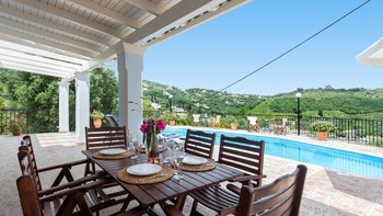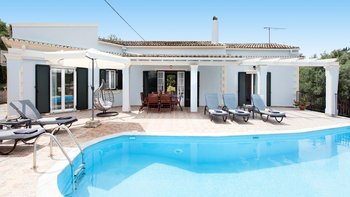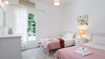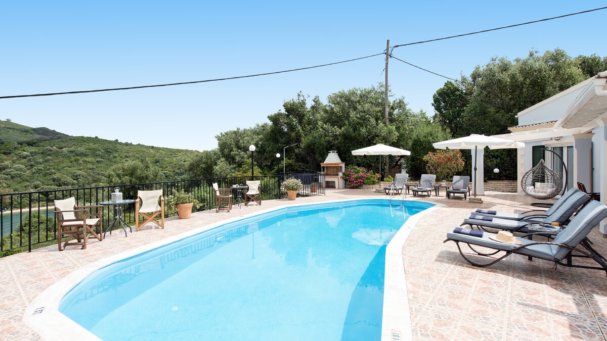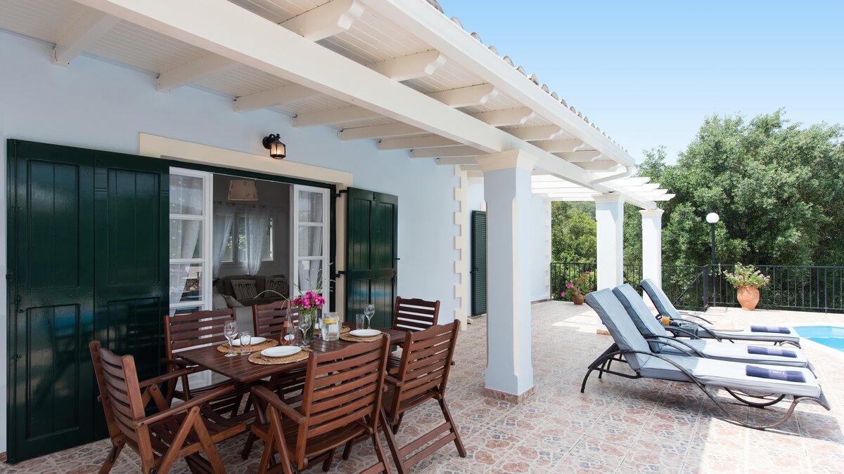 Umgeben von einem natürlichen Schatten versilberter Olivenbäume und mit Blick auf den Hafen von St. Stephano, nur einen kurzen Spaziergang entfernt, ist diese Familienvilla auf Korfu kühl, ruhig, komfortabel und praktisch.
