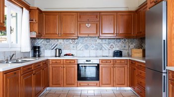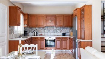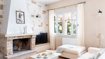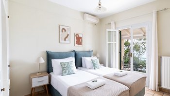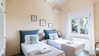 Strongilo befindet sich in einer unschlagbaren Lage mit Blick auf das Meer in der Nähe von St. Stephano. Agios Stefanos ist nur 15 Minuten zu Fuß entfernt, während Kerasia Strand nur 5 Minuten Fahrt von der Villa entfernt ist. Strongilo fühlt sich vollkommen privat, umgeben von hohen Bäumen, die den fantastischen Blick auf das Meer umrahmen. Dieser Terrakotta-Villa erstreckt sich über zwei Etagen und ist in warmen neutralen Farbtönen gehalten; das Erdgeschoss ist für einen offenen Grundriss des Wohnens mit einem komfortablen Sitzbereich, einem Innen-Esstisch, an dem man die Aussicht genießen kann, und einer gut ausgestatteten Küche; ein Zweibett-Schlafzimmer und ein Duschbad vervollständigen das Erdgeschoss.