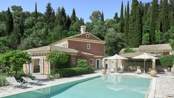 Mit Blick auf das Meer vom Pool und der überdachten Terrasse, blühenden Sträuchern neben einem „Wohnzimmer“ im Freien am Pool, einem kleinen Brunnen auf einer langen Pergola-Terrasse und den Düften des Kräutergartens, die sich mit den Pinien am Hügel vermischen, ist das Leben im To Perivoli ein wahrhaft verführerisches Erlebnis. Und das mit entwaffnender Einfachheit entworfene Interieur der Villa ist nicht weniger einladend. Die Unterkunft ist auf zwei Gebäude aufgeteilt, mit drei Schlafzimmern im Haupthaus und zwei im angrenzenden Cottage, das auch über ein eigenes Wohnzimmer/Küchenzeile verfügt, das attraktiv mit bemalten Dachsparren und gepolsterten Rattanmöbeln eingerichtet ist. Im Haupthaus gibt es viel Platz für ein vollständiges Beisammensein, wo sich eine geflieste Pantryküche zum Pool hin öffnet und ein großes Wohnzimmer mit cremeweißen Sofas und Doppeltüren zur Terrasse ist kühl und gemütlich. Und dieses charmante Ensemble ist auch gut positioniert, um die Küste und die Landschaft der Insel zu genießen. Mit direktem Zugang zum ruhigen Kouloura-Strand und zehn Minuten von einer Taverne entfernt, ist To Perivoli nur 1 km von den Wassersportmöglichkeiten in Kalami entfernt. Agni, San Stephano, Avlaki und Kassiopi sind alle 8 km entfernt.