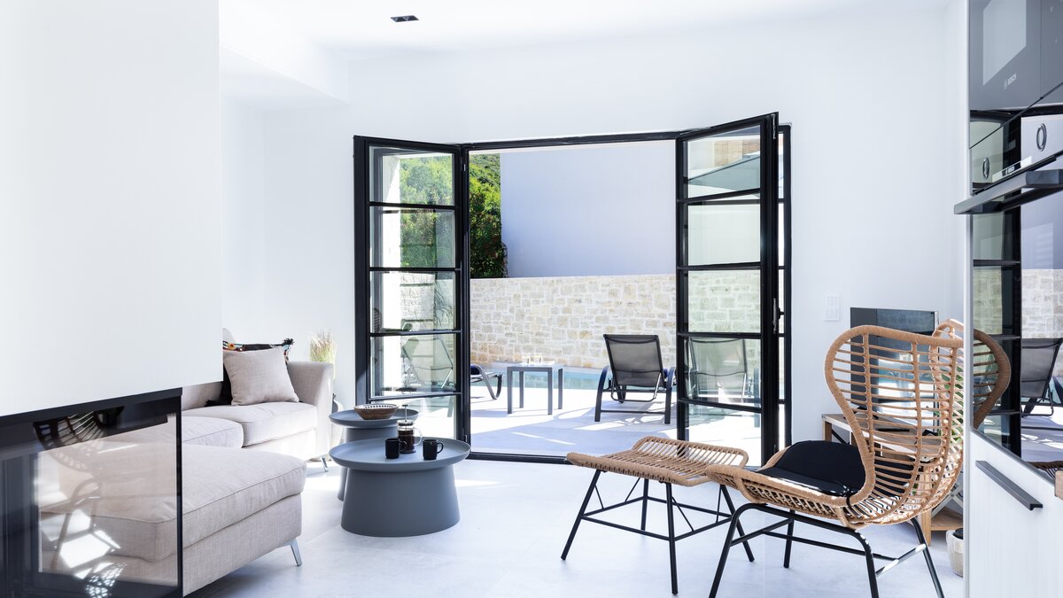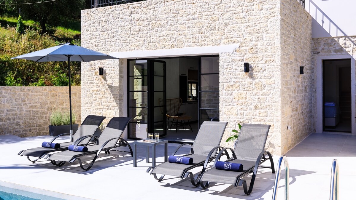 In der Villa strömt das Tageslicht ungehindert von Raum zu Raum durch den OFFENER GRUNDRISS Wohn-, Ess- und Küchenbereich, wodurch ein heller und luftiger Raum geschaffen wird, in dem die Gäste Kontakte knüpfen können, während sie die vielen modernen Annehmlichkeiten der Villa genießen. Beiden Schlafzimmer mit eigenem Bad sind komfortabel, geräumig und gut eingerichtet und bieten direkten Zugang zur Terrasse und zum Poolbereich. Für einen entspannteren Aufenthalt können die Gäste gegen Aufpreis einen Kochservice in der Villa in Anspruch nehmen sowie Wein- und Lebensmittellieferungen. Weitere optionale Extras im Toulas House umfassen Wellnessbehandlungen, Wäscheservice und Babysitting. Es gibt auch Klimaanlagen in der gesamten Villa.