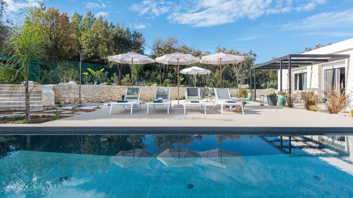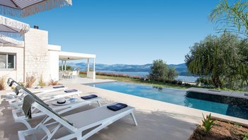 Villa Amavi ist ein stilvoller Rückzugsort mit drei Schlafzimmern auf Korfu, der Privatsphäre, Abgeschiedenheit und einen atemberaubenden 180-Grad-Blick über das Wasser in Richtung Albaniens Berge verspricht.