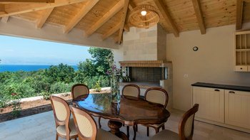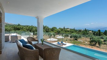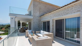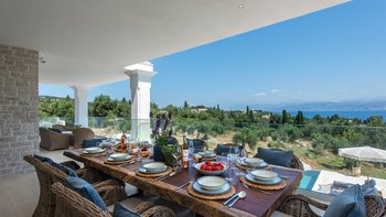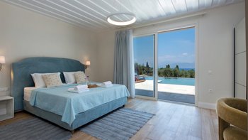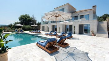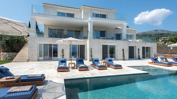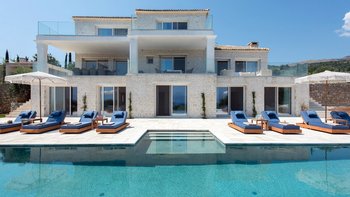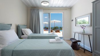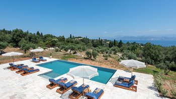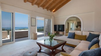 Ein stilvolles Refugium mit sechs Schlafzimmern, nur wenige Minuten vom Avlaki Beach entfernt, verbindet die Villa Cassopo modernen Komfort mit einfachem Zugang zu Korfus pulsierender Küste.