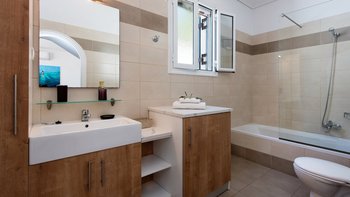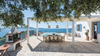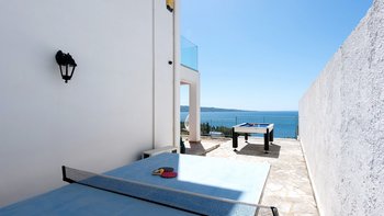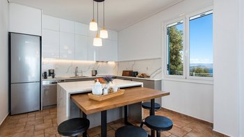 Die Villa bietet schöne Wohnbereiche im Freien, darunter ein Esstisch im Freien, ein Wohnbereich und ein Privater Pool, sowie Tischtennis und ein Billardtisch. Deren Villa liegt ideal in der Nähe des Kerasia Strandes, einem atemberaubenden Kieselstrand mit Sonnenliegen, einer Taverne und einem Café. Deren Villa ist auch nur eine kurze Autofahrt von Restaurants in St. Stephano entfernt. Obwohl das Haus über eine ziemlich steile Zufahrtsstraße erreichbar ist, bietet es eine Aussicht, die die Anstrengung bei weitem überwiegt.