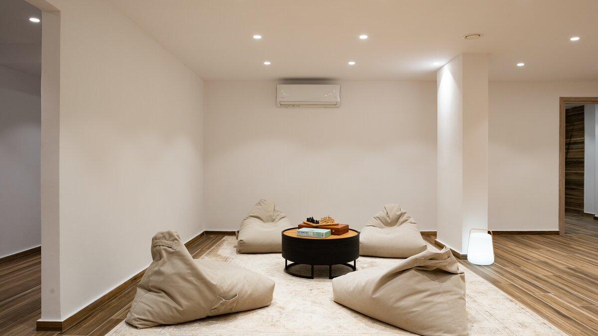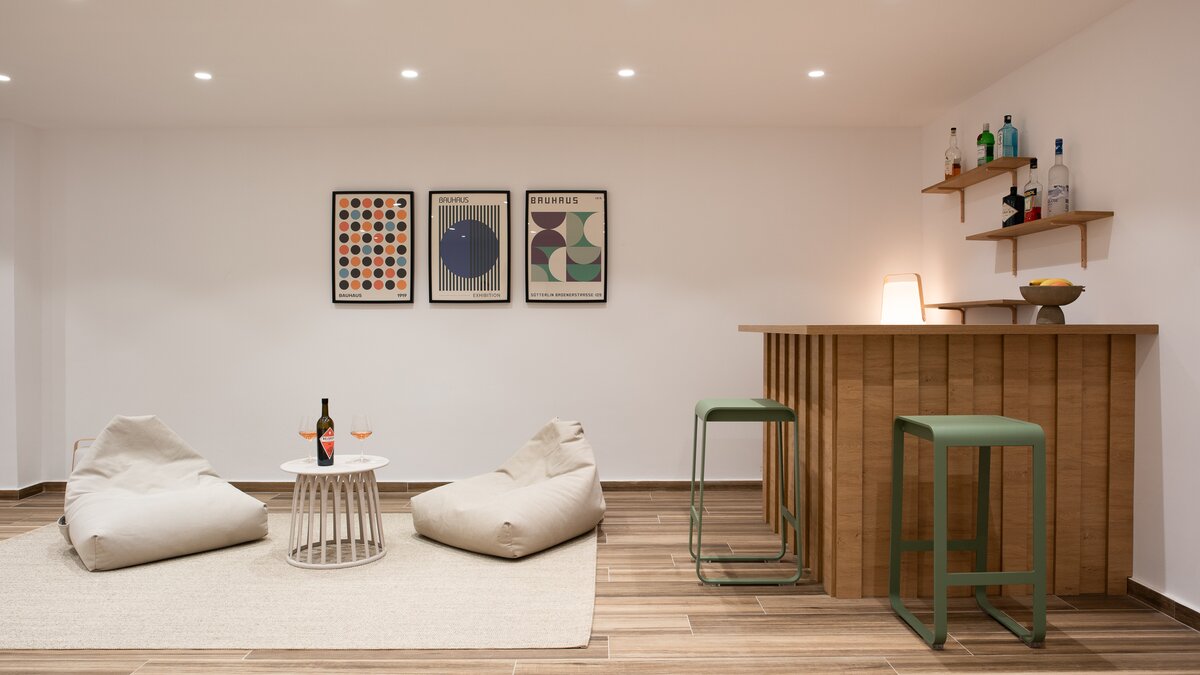 Das untere Erdgeschoss ist für Freizeit und Unterhaltung bestimmt. Es beherbergt einen Kinoraum, der für gemütliche Filmabende sorgt. Fitnessbegeisterte werden den Fitnessraum zu schätzen wissen, während Familien das große Spielezimmer nutzen können, das gleichzeitig als Partyraum dient.